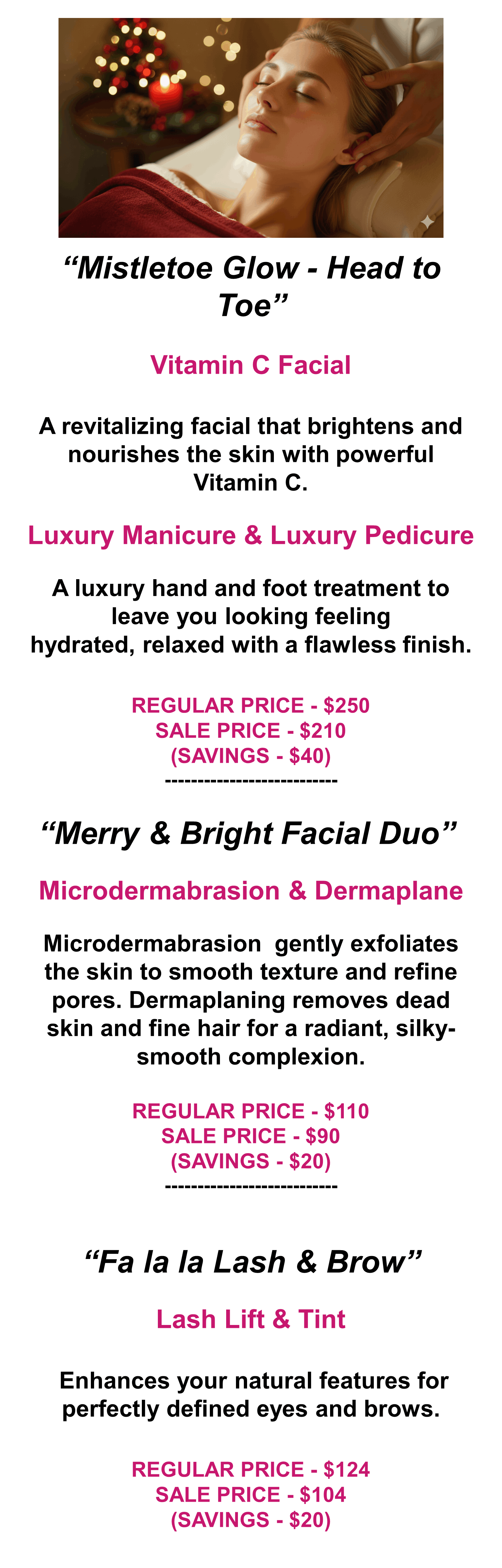 Your experience at Spa Simeone is very important to us and we strive to exceed your expectations with quality service, outstanding professional attitude, and a friendly staff to make you feel "BEAUTIFUL FROM HEAD TO TOE".